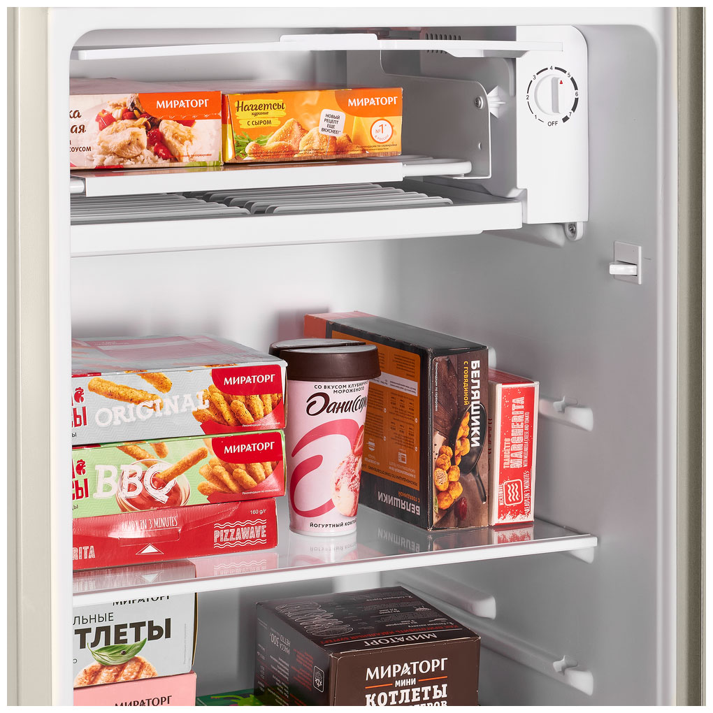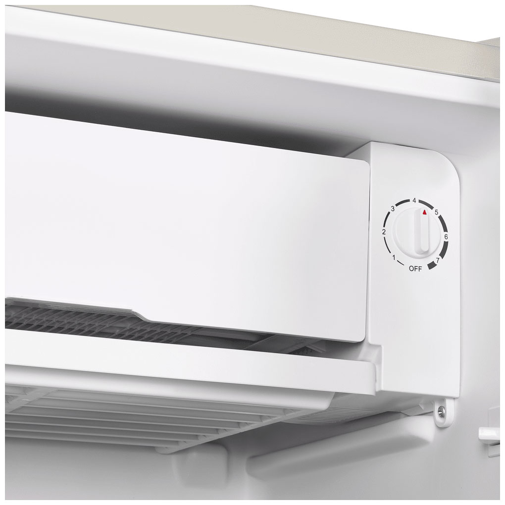Холодильник имеет механическое управление с семью уровнями охлаждения. Встроено небольшое морозильное отделение с дверцей.
