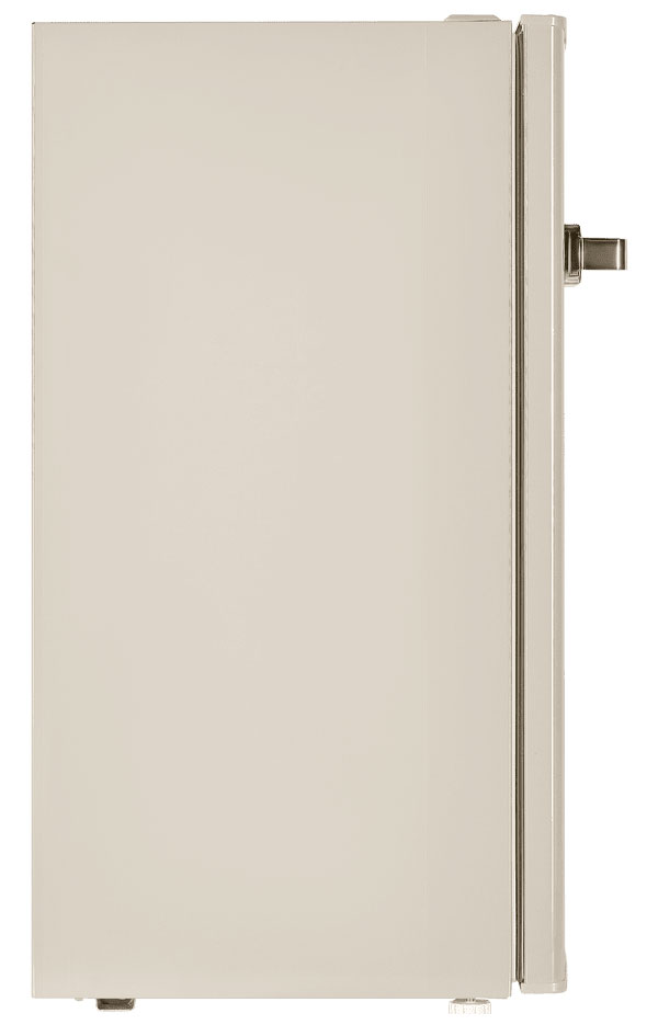 Однокамерный компактный холодильник (92 л) MAUNFELD в стиле ретро для уникальных дизайнерских интерьеров. Идеально разместится в ретро-пространстве. Внешний вид подчеркивается скругленными краями корпуса и массивной хромированной ручкой.