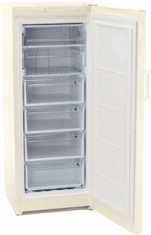 Морозильный шкаф STINOL STZ 150 E выполнен в корпусе бежевого цвета. Он имеет полезный объем 214 л. Внутреннее пространство представлено 4 выдвижными ящиками и 2 открытыми полками для распределения продуктов.