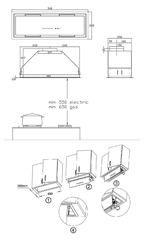 Производитель KORTING Вес, кг 8.3 Тип вытяжки Плоская/ Телескопическая Ширина вытяжки 51-55 см -