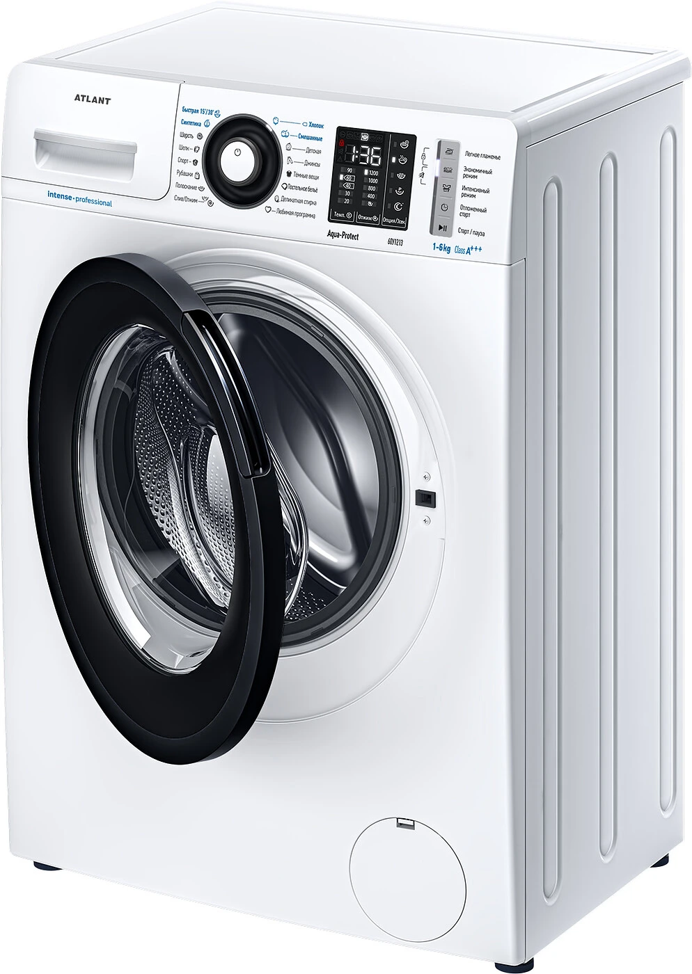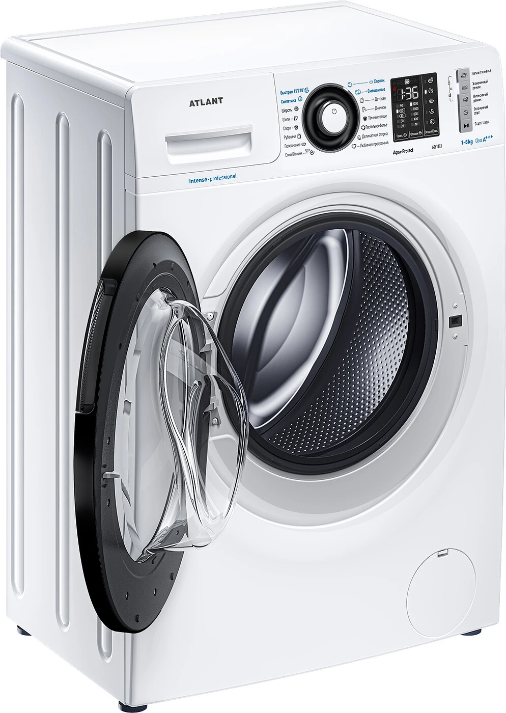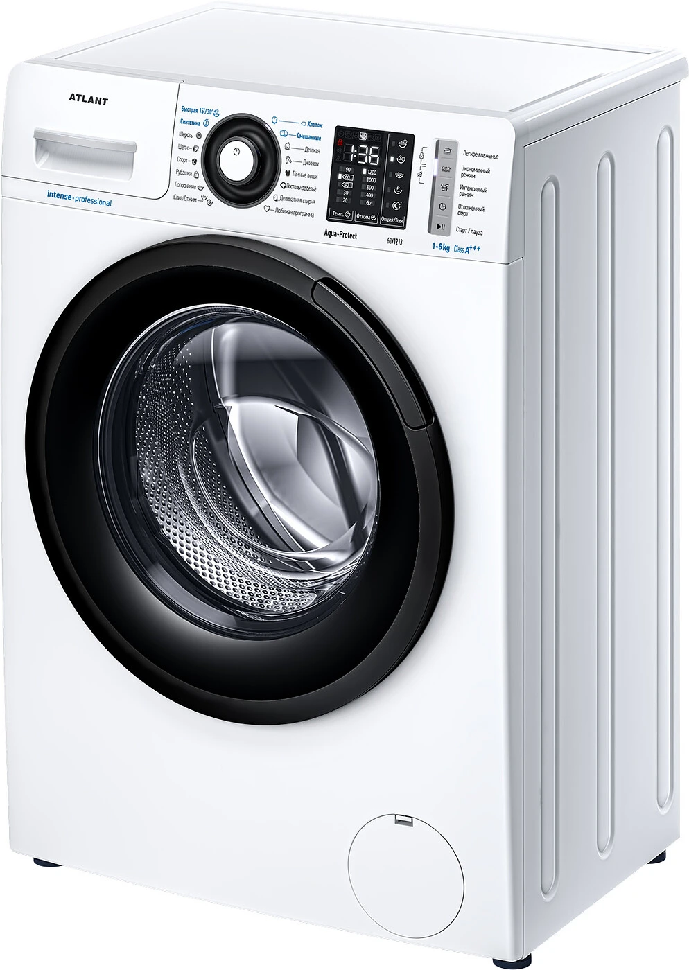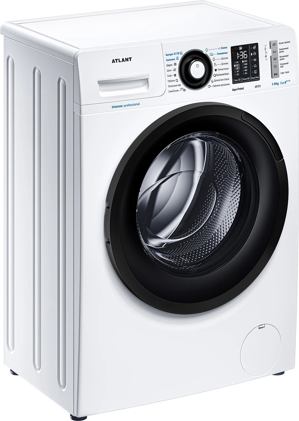 Новая стиральная машина ATLANT серии INTENSE PROFESSIONAL имеет уникальный дизайн, который прекрасно дополнит любой интерьер своим внешним видом. С помощью новых сенсорных технологий достаточно легкого касания для выбора функций и программ. Светодиодные индикаторы и сегментный дисплей машины размещены на панели управления под небольшим углом, что облегчает визуальное восприятие отображаемой информации о работе машины. Благодаря интеллектуальным программам она не только интуитивно понятна в управлении, но и обеспечивает превосходные результаты стирки при низком потреблении воды и электроэнергии. Кроме того, действует увеличенная гарантия 5 лет на двигатель