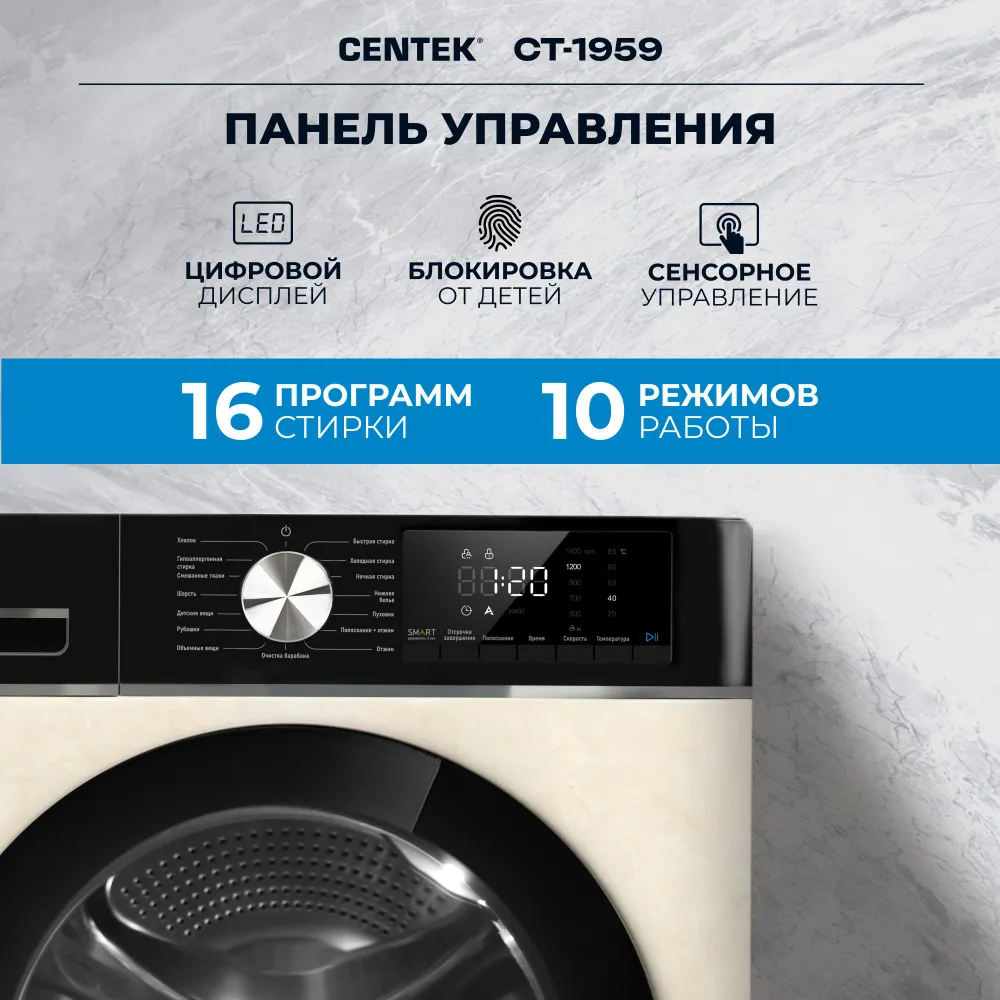 Стиральная машина Centek CT-1959 бежевый