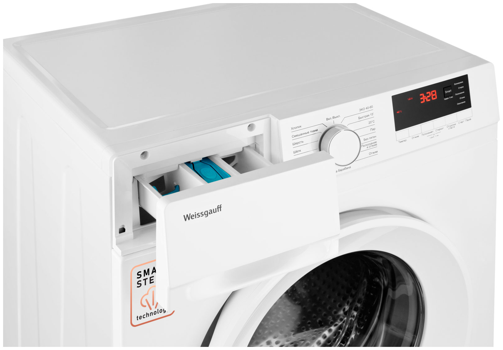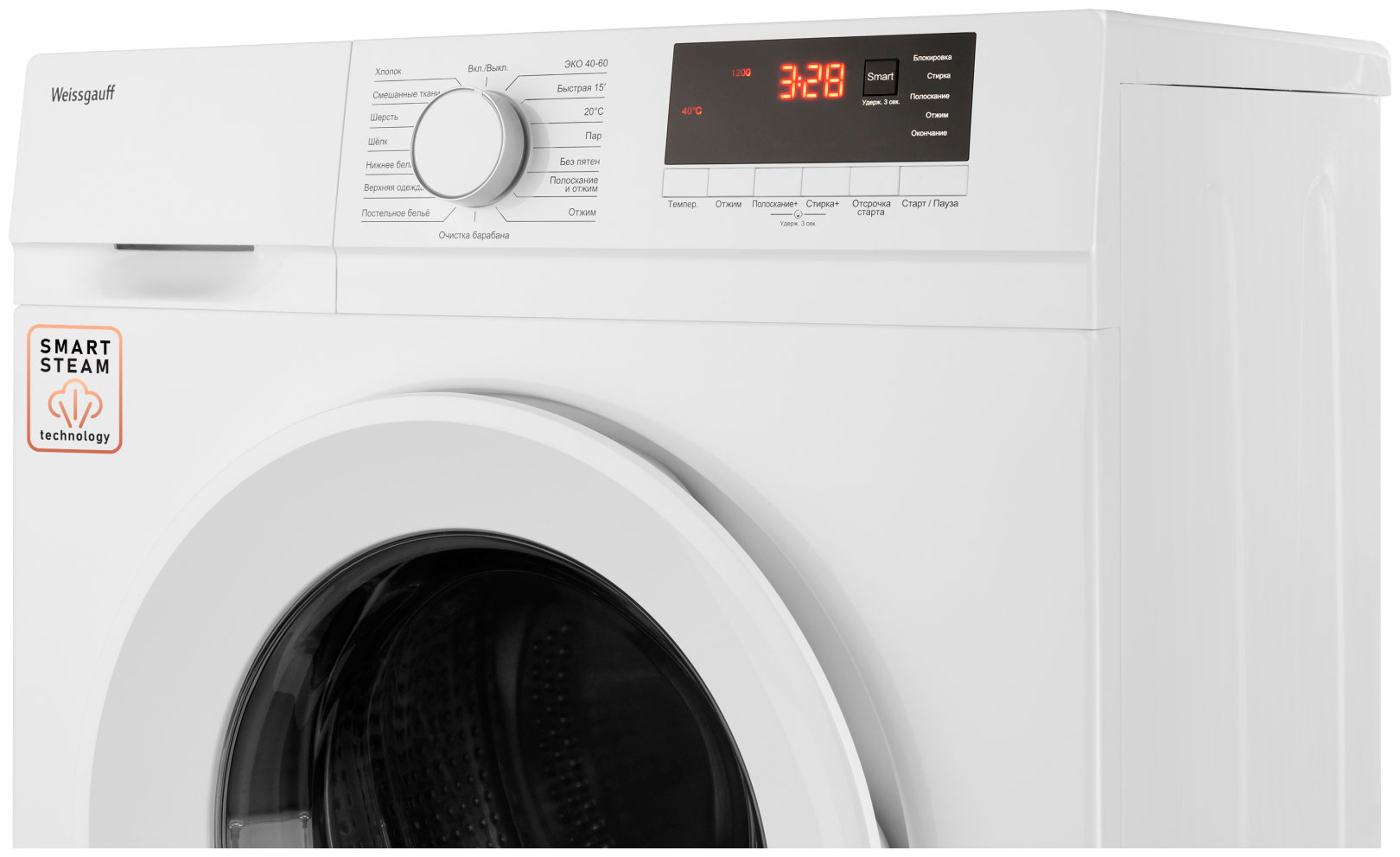 Smart, Хлопок, Верхняя одежда, Шерсть, Постельное бельё, Очистка барабана, Без пятен, Нижнее бельё, Шёлк, Пар, Быстрая 15’, Смешанные ткани, 20°, ЭКО 40-60, Полоскание и отжим, Отжим