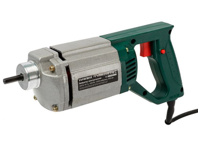 Потребляемая мощность (Вт) 1400. Длина вала (м) 2. Диаметр булавы (мм) 35. Тип двигателя однофазный. Частота вибраций 12500. Мощный электродвигатель Да. Кнопка блокировки выключателя Да. Надежная фиксация булавы резьбовым соединением Да. Удобная рукоять Да. Комплектация Шланг Да.