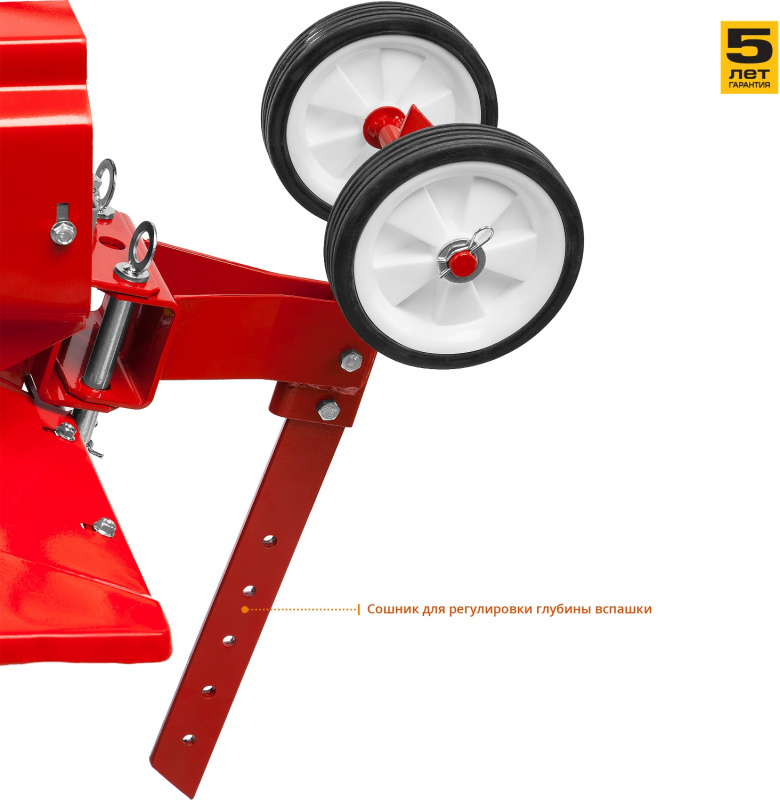 • Регулируемый сошник надежно фиксируется к раме культиватора и отвечает за регулировку глубины вспашки.