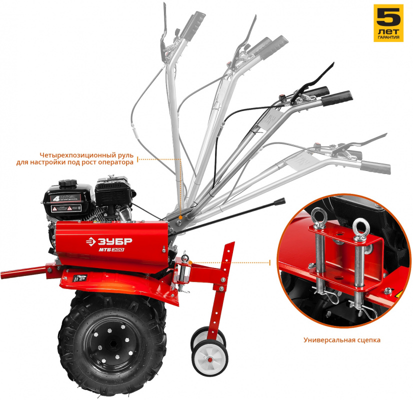 • Универсальная сцепка позволяет использовать различное навесное оборудование.