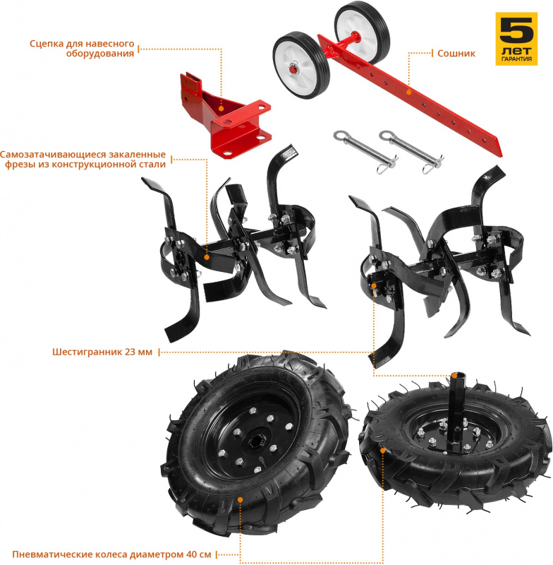 • Конструкция мотоблока позволяет использовать его с различными навесными оборудованием.