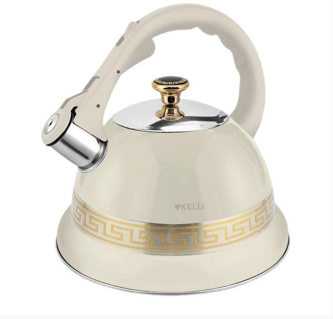 Металлический чайник со свистком Объем: 3,5 л Высококачественная нержавеющая сталь Многослойное капсульное дно Эргономичная ручка не нагревается ECO FRIENDLY Свистит при закипании Зеркальная полировка Подходит для всех видов плит Цвет кремовый