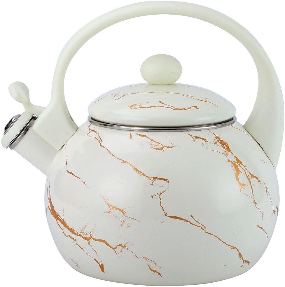 Чайник со свистком 2.5 л, эмалированная сталь, бакелитовая ручка, наружное покрытие - эмаль с рисунком. Подходит для индукции.